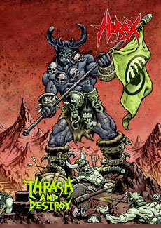 Following the 2007 releases of the "Assassins Of War" and "Chaos And Brutality" Eps, the Long Beach thrashers unveil their brand-new DVD, "Thrash And Destroy." The DVD features the band's entire 75-minute performance at the Keep It True Festival IX on November 3, 2007, in Dittigheim, Germany, a raw, kick ass show to a sold-out audience. Never before seen live footage: fists flying, stage diving, heads banging! Six in-your-face professional camera angles—the closest you can get to seeing the band live without being there—an up-close, personal look at one of the all-time most legendary thrash metal bands, with high-quality digital sound. More than that, the DVD disc includes a 12-song bonus set recorded live at the Metal Forces Night on September 29, 2007, in Lorrach, Germany. More than that a bonus audio CD with complete 75-minute performance has been included to the package! The artwork has been drawn by BILL HAUSER. The DVD is NTSC and Region 0. |