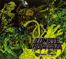 Gli Zombie Holocaust , conosciuti semplicemente anche come ZH , sono una formazione californiana che, in regime di autoproduzione, ha già sfornato due DVD ( Live And Dangerous e Last Night To Thrash ), l'EP Massive Attack e, infine, il primo full lenght, Strike Force , nel 2009. La casa discografica EBM Records , nella sua indefessa ricerca di gruppi sconosciuti ristagnanti nell'underground, ha ora deciso di ridistribuire l'album, nella convinzione che questa formazione abbia i numeri giusti per affermarsi. Strike Force , munito di una cover a dir poco inguardabile, è un lavoro estremo e nichilista che travalica i confini del thrash per approdare su sonorità più precipuamente hardcore. Mi hanno ricordato in vari frangenti lo stile dei grandi Nuclear Assault , anche se gli Zombie Holocaust sono, almeno per il momento, lontanissimi dallo standard qualitativo raggiunto dalla band di Dan Lilker nei primi tre dischi. La musica, contraddistinta per lo più da riff velocissimi, presenta senz'altro alcuni spunti interessanti, sebbene appaia a tratti disordinata e ripetitiva. Valido nel complesso il vocalism arrabbiato di Ridiculous Nicholas (già, purtroppo per lui si chiama proprio così). Il problema di fondo è che il combo americano, seppur gli si debbano riconoscere ferrea determinazione e spiccata attitudine alle ritmiche forsennate, oltre che ricalcare pedissequamente strade già percorse miriadi di volte, propone un sound non troppo stuzzicante.